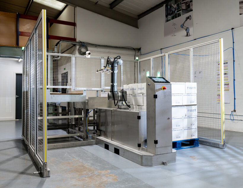 Market ready robotic palletising system. Up to 50% less cost and 60% less space required than traditional palletising systems, suitable for manufacturers of all sizes…